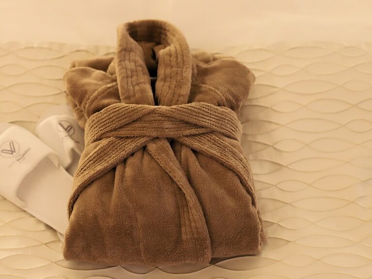 Gerne stellen wir Ihnen einen Wellnesskorb mit Leihbademantel und Badeslipper zur Verfügung. (15,00€ pro Person)